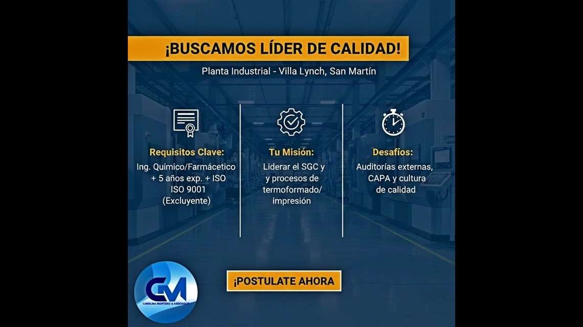 🚀 ¡BUSCAMOS LÍDER DE CALIDAD PARA PLANTA INDUSTRIAL! 🚀